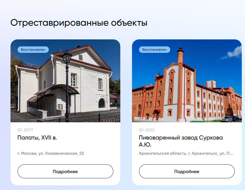 Посмотреть какие здания готовят к реставрации в твоем регионе прямо сейчас можно в каталоге объектов культурного наследия.